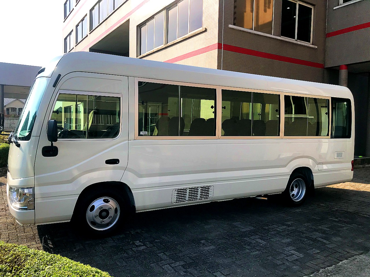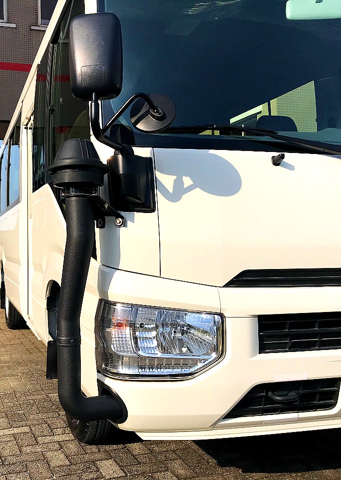 The Toyota Coaster reflects cutting-edge engineering and an unwavering dedication to high quality. Every detail—from its sleek exterior finish to the brake linings—is crafted with performance in mind. Its aerodynamic design, featuring a slanted windshield, smooth surfaces, and tightly fitted front and rear bumpers, reduces air resistance, enhancing both fuel efficiency and vehicle handling.